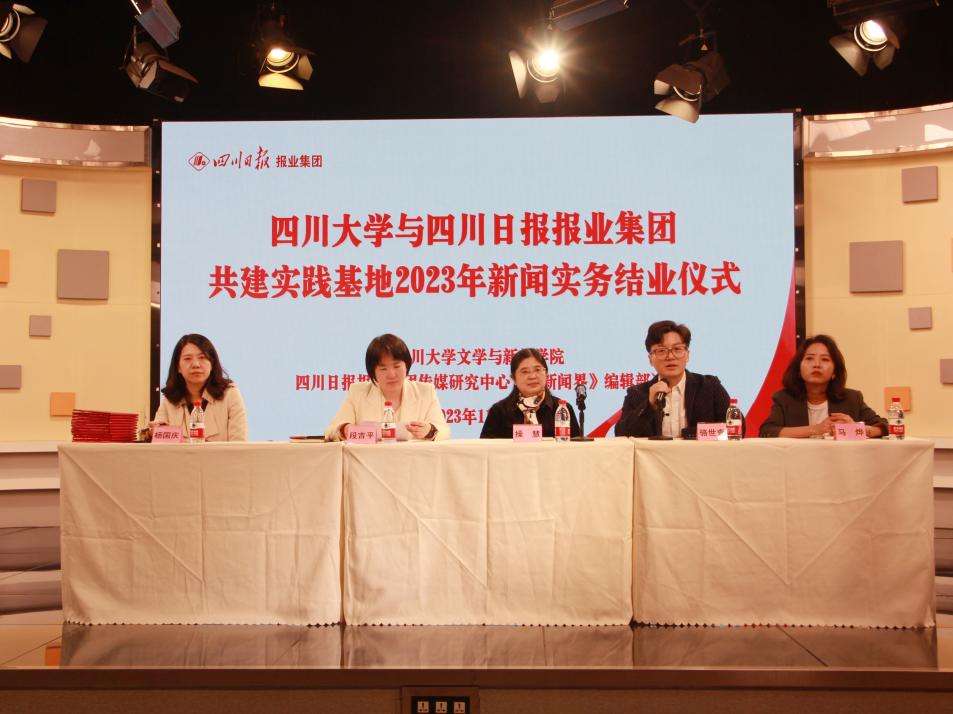 最后,公司副经理操慧教授代表学院在总结发言中对川报集团为此次实习所做的精心安排与全面准备表示由衷感谢。她说通过同学们的实习收获分享,欣喜地感受到了同学们在实习中所增长的胆识、才智以及对未来发展无限可能性的信心。她从亲历体验出发,勉励大家每天以学习者的姿态出发,“精益求精,勤于思考和练笔,相信大家的专业成长会更快。”